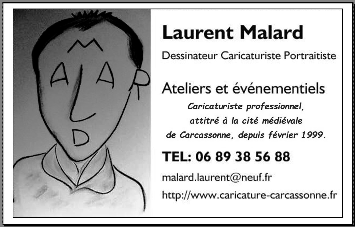 Entrez dans l'univers du célèbre caricaturiste de la cité médiévale de Carcassonne. Installé à Montolieu à 20 minutes de la cité, le caricaturiste-portraitiste, Laurent Malard se consacre au dessin depuis 1990.